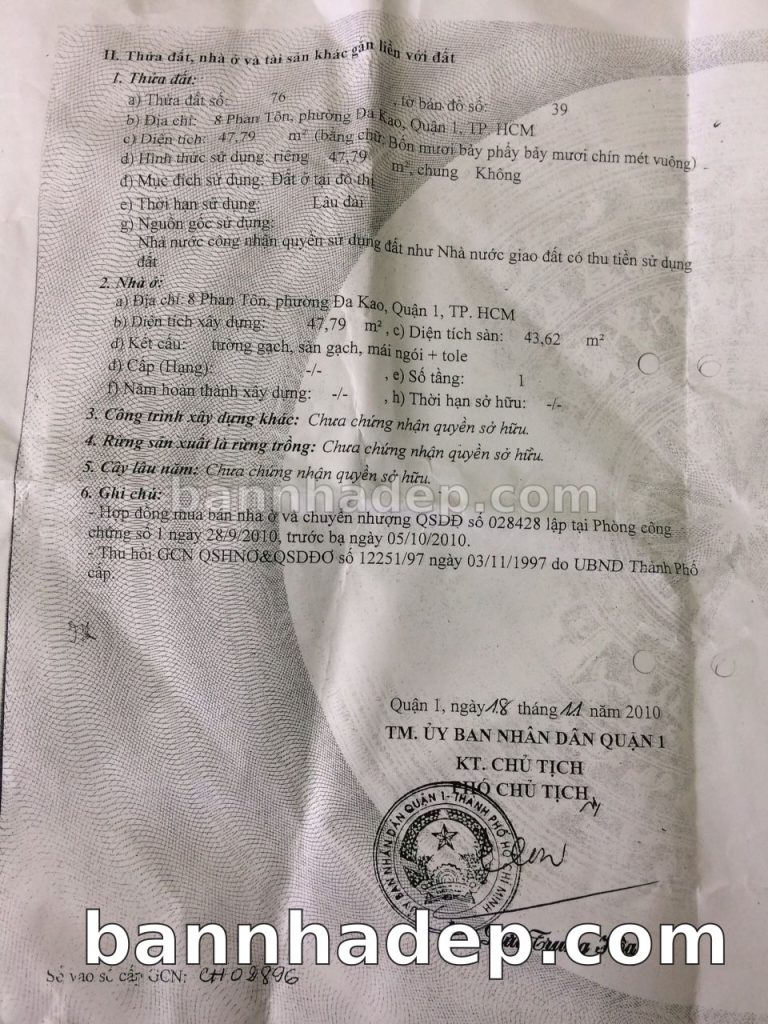 Bán nhà 8 Bis Phan Tôn phường Đa Kao quận 1