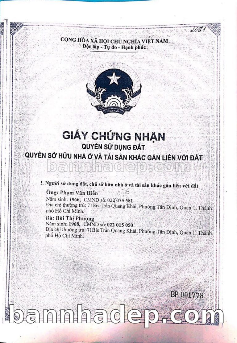 Bán nhà 71 Bis Trần Quang Khải phường Tân Định quận 1