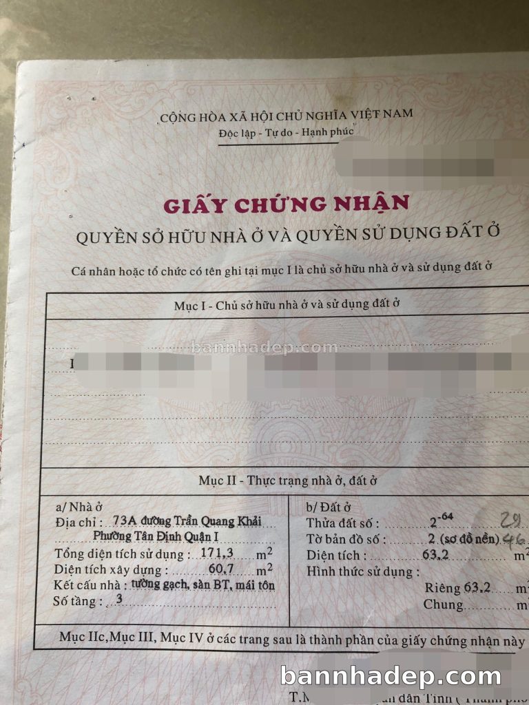 Bán nhà 73A Trần Quang Khải phường Tân Định quận 1