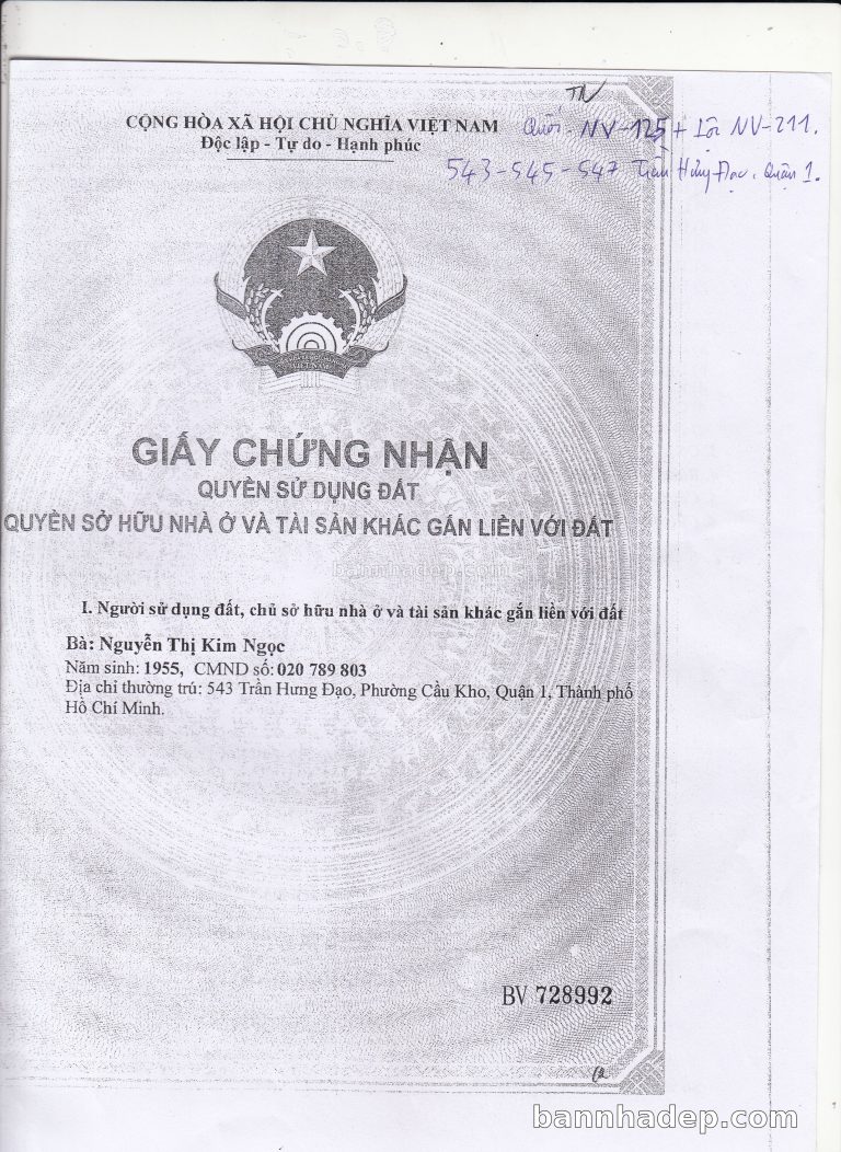 Bán nhà 543-545-547 Trần Hưng Đạo phường Cầu Kho quận 1