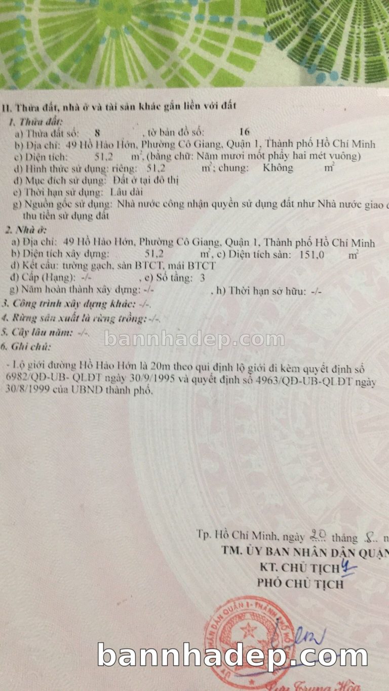 Bán nhà 47-49 Hồ Hảo Hớn phường Cầu Kho quận 1