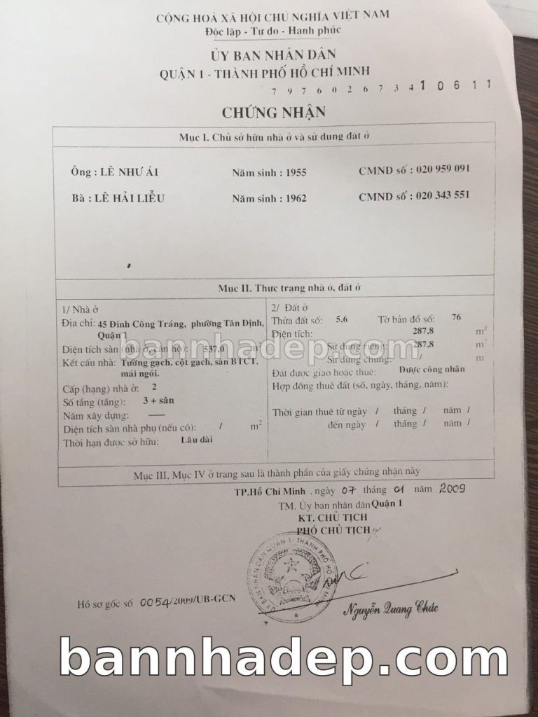 Bán nhà 45 Đinh Công Tráng phường Tân Định quận 1