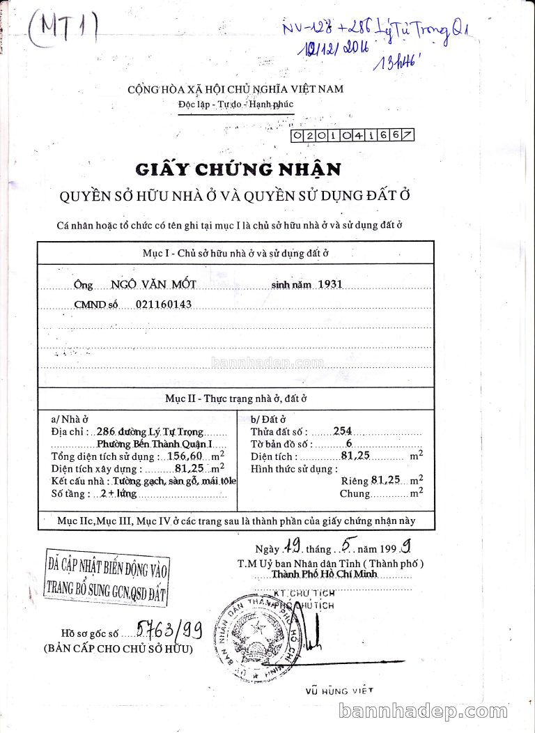 Bán nhà 286 Lý Tự Trọng phường Bến Thành quận 1