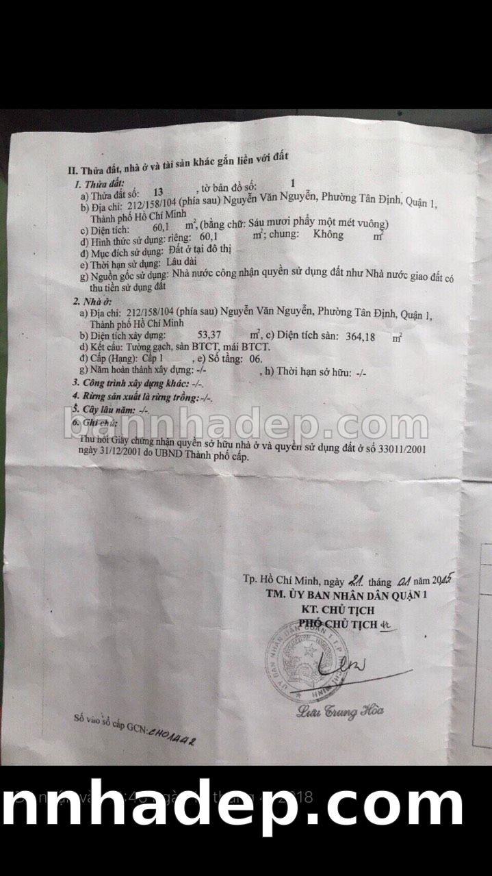 Bán nhà 296Bis Trần Hưng Đạo phường Nguyễn Cư Trinh quận 1