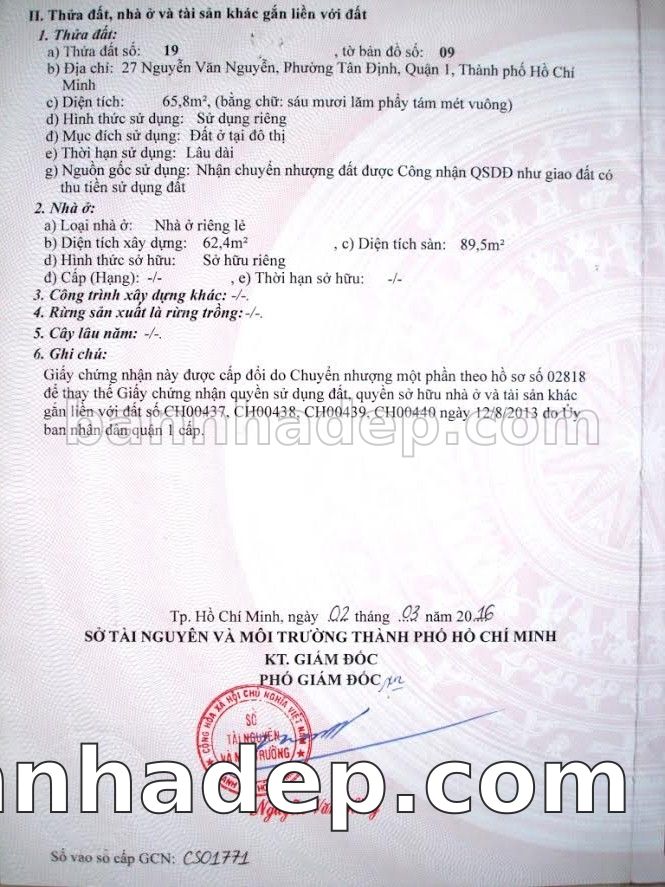 Bán nhà 27 Nguyễn Văn Nguyễn phường Tân Định quận 1