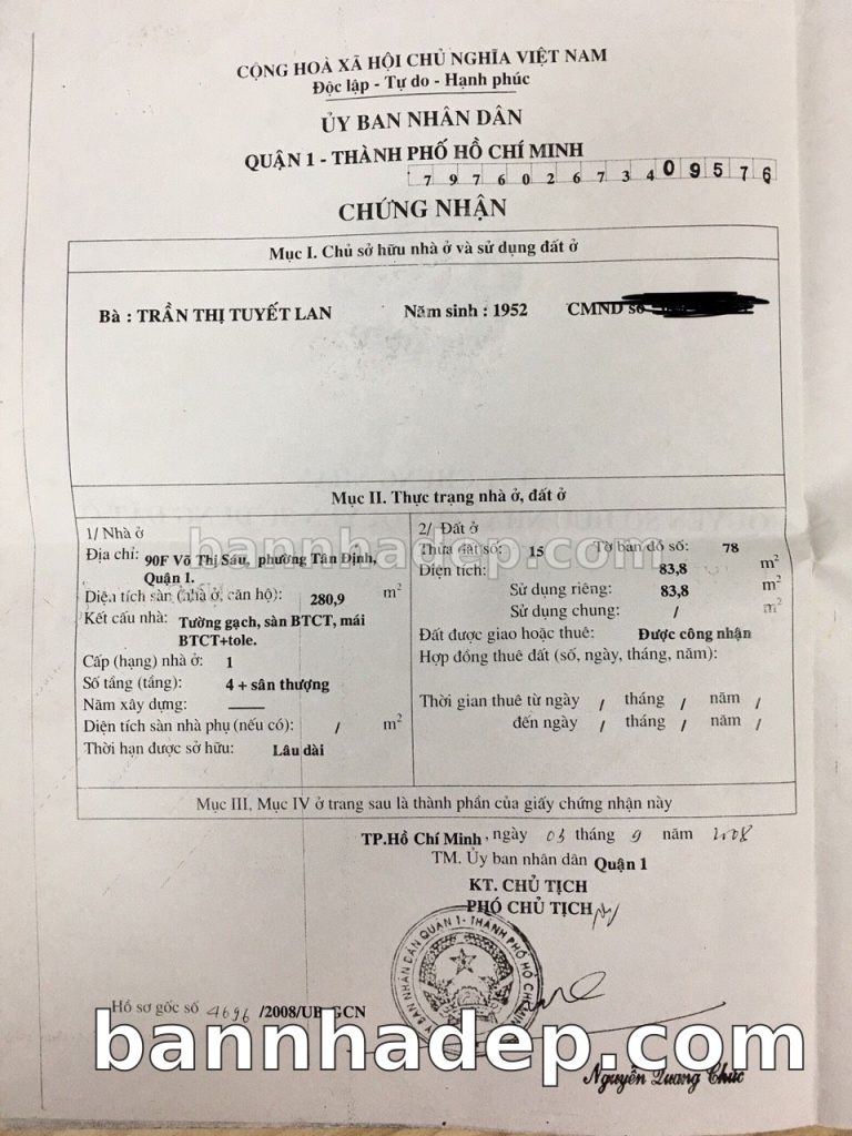 Bán nhà 90D Thạch Thị Thanh phường Tân Định quận 1