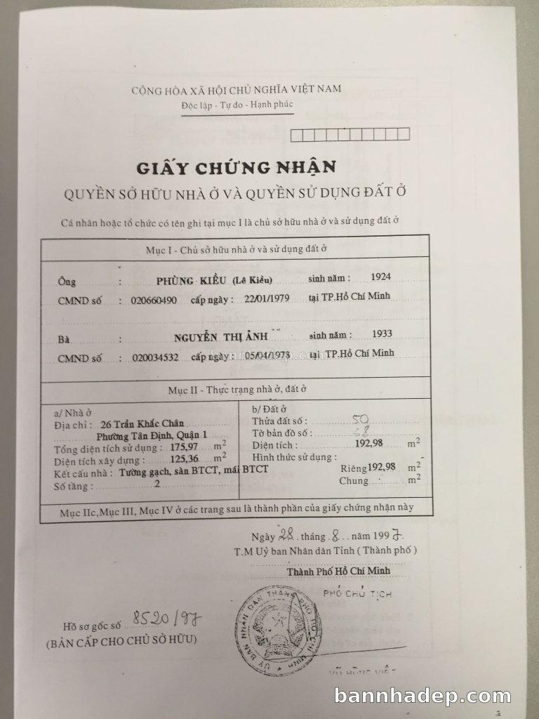 Bán nhà 26 Nguyễn Bỉnh Khiêm phường Đa Kao quận 1