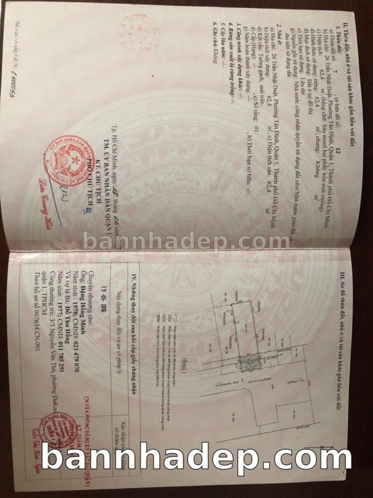 Bán nhà 26 Trịnh Văn Cấn phường Cầu Ông Lãnh quận 1