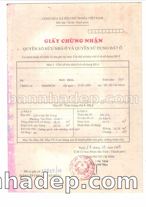 Bán nhà 220I Hai Bà Trưng phường Tân Định quận 1