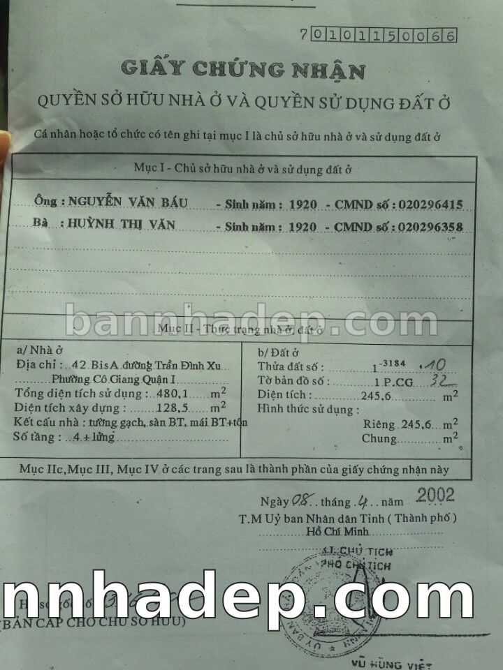 Bán nhà 42 Bis Trần Đình Xu phường Cô Giang quận 1