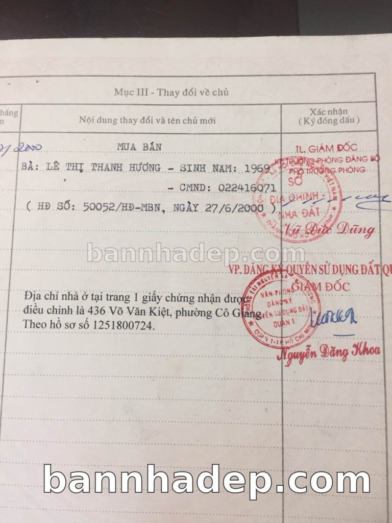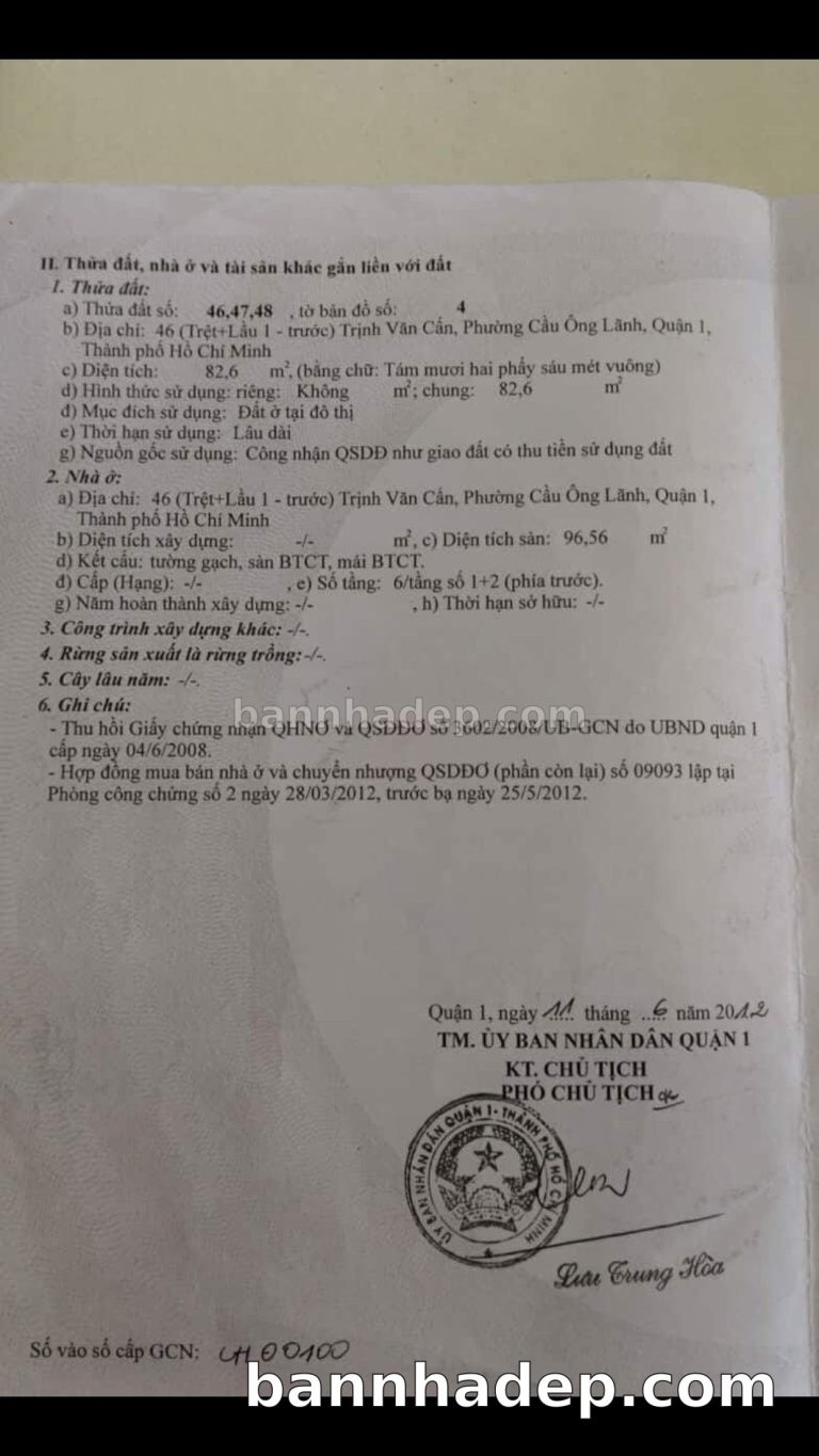 Bán nhà 46 Trịnh Văn Cấn phường Cô Giang quận 1