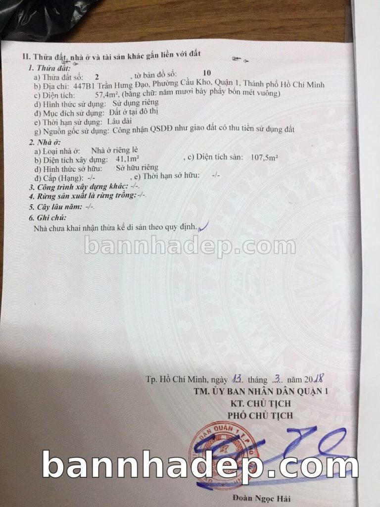Bán nhà 447B1 Trần Hưng Đạo phường Cô Giang quận 1