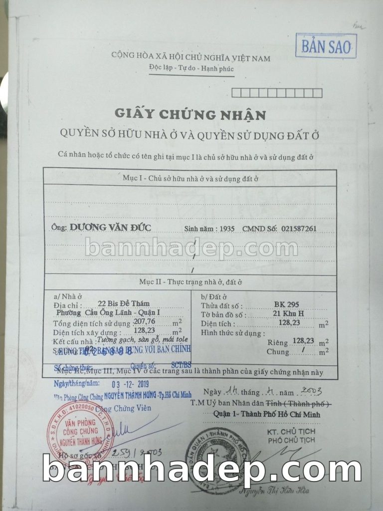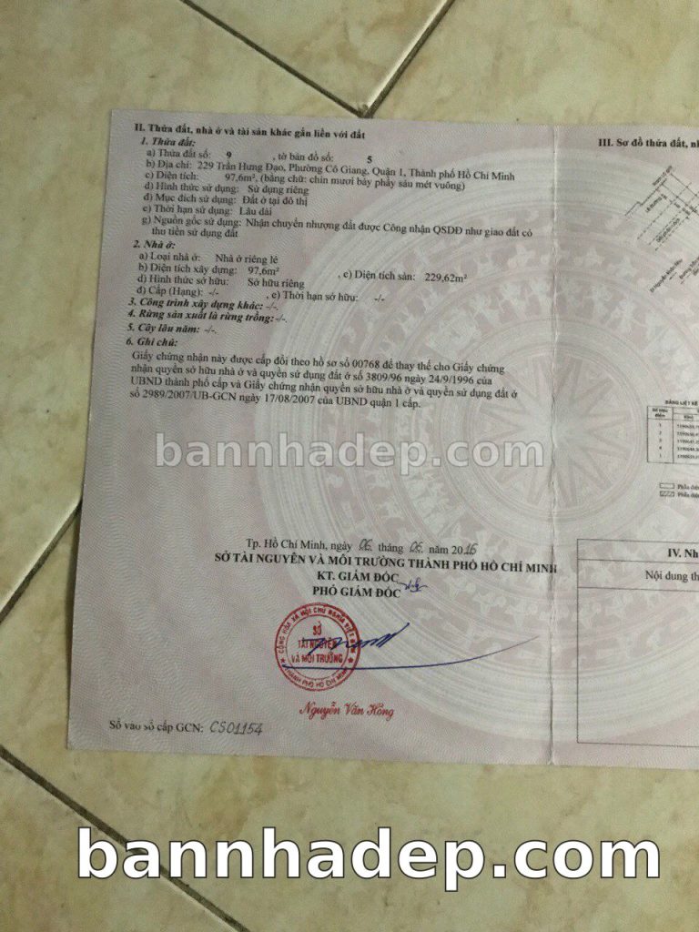 Bán nhà 229 Trần Hưng Đạo phường Cô Giang quận 1