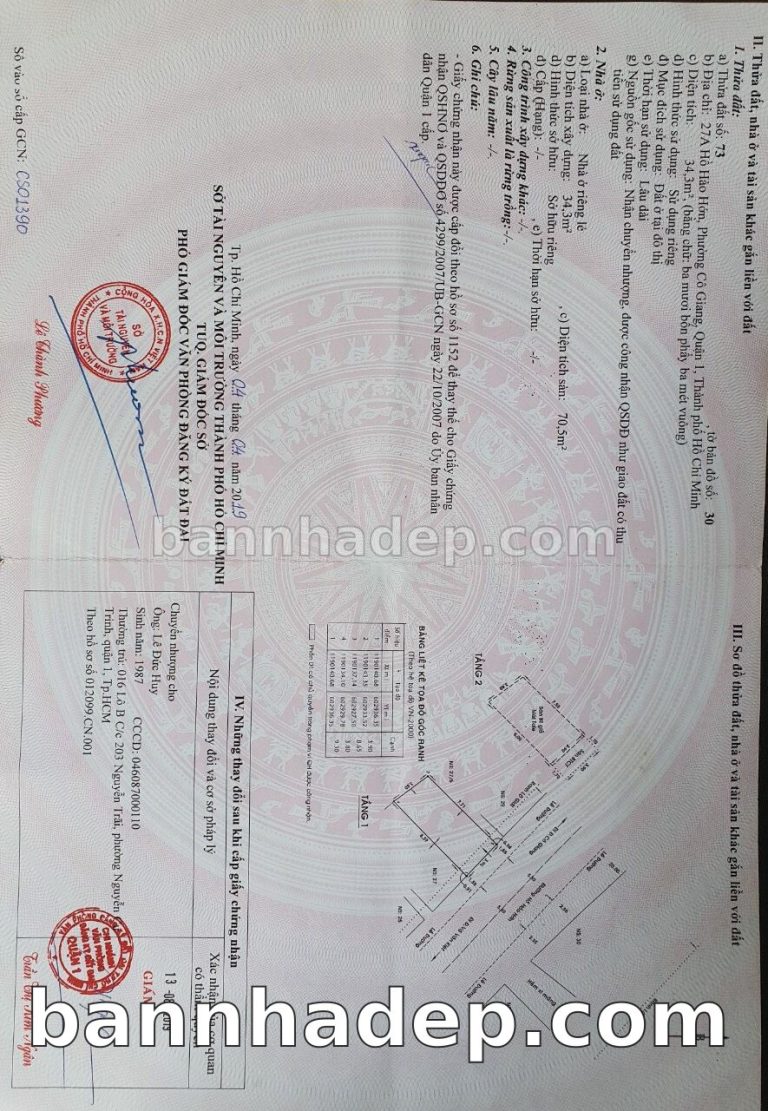 Bán nhà 27A Hồ Hảo Hớn phường Cô Giang quận 1
