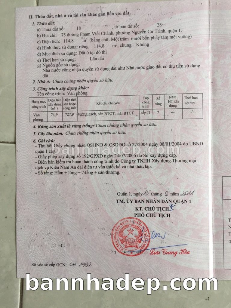 Bán nhà 75 Phạm Viết Chánh phường Nguyễn Cư Trinh quận 1