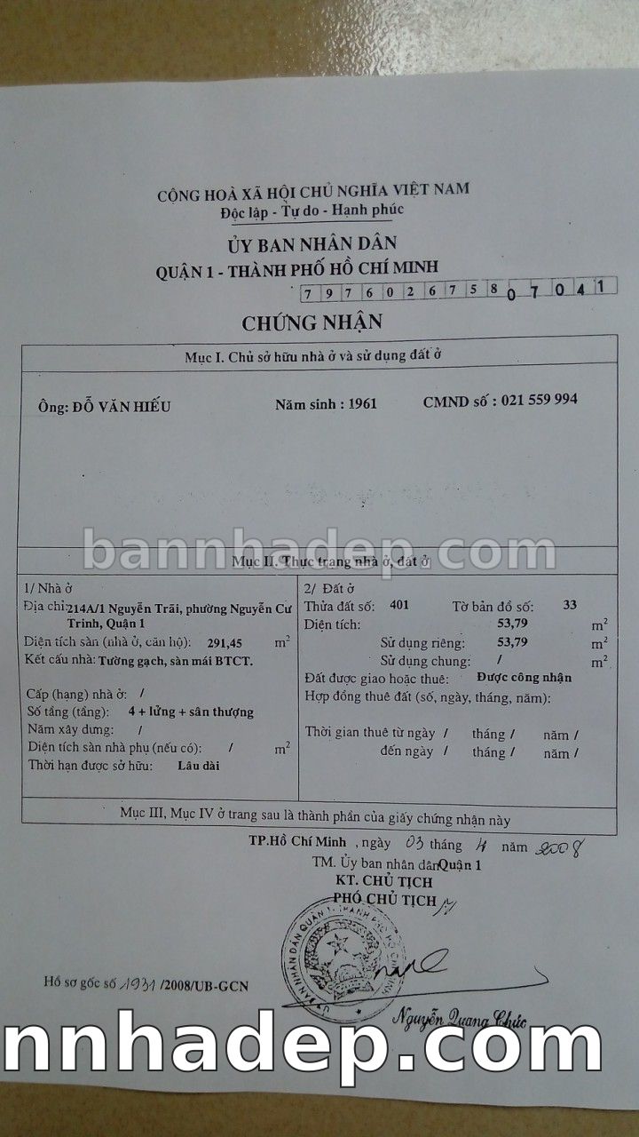 Bán nhà 214 Nguyễn Trãi phường Nguyễn Cư Trinh quận 1
