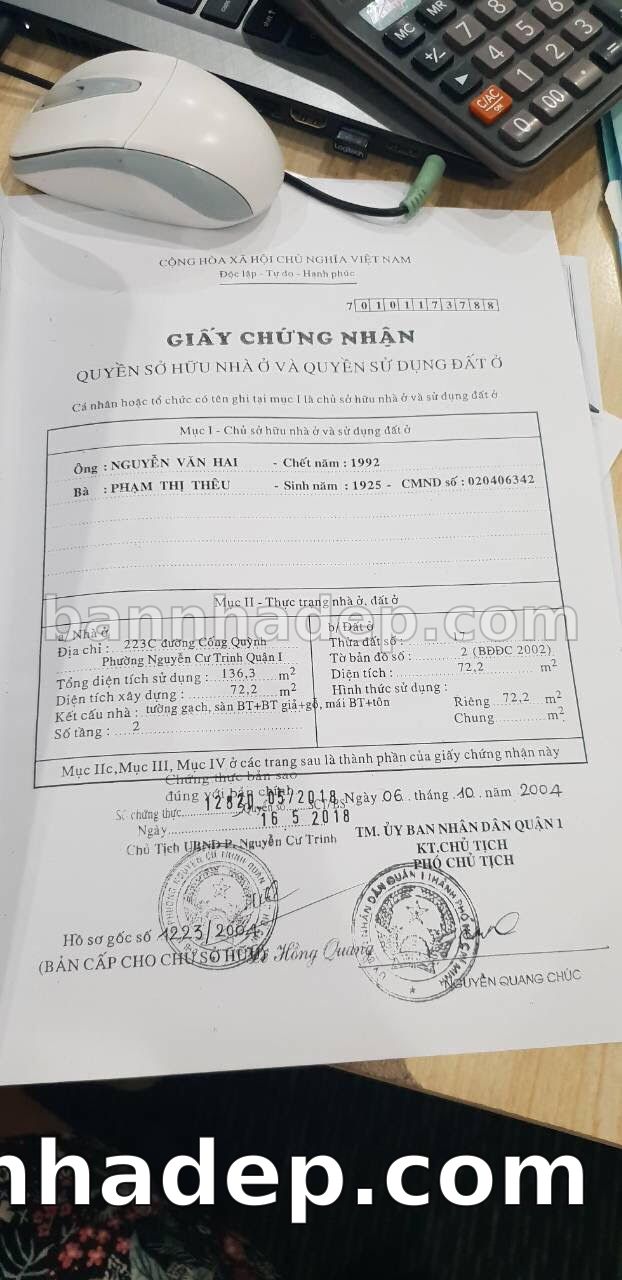 Bán nhà 223C Cống Quỳnh phường Nguyễn Cư Trinh quận 1