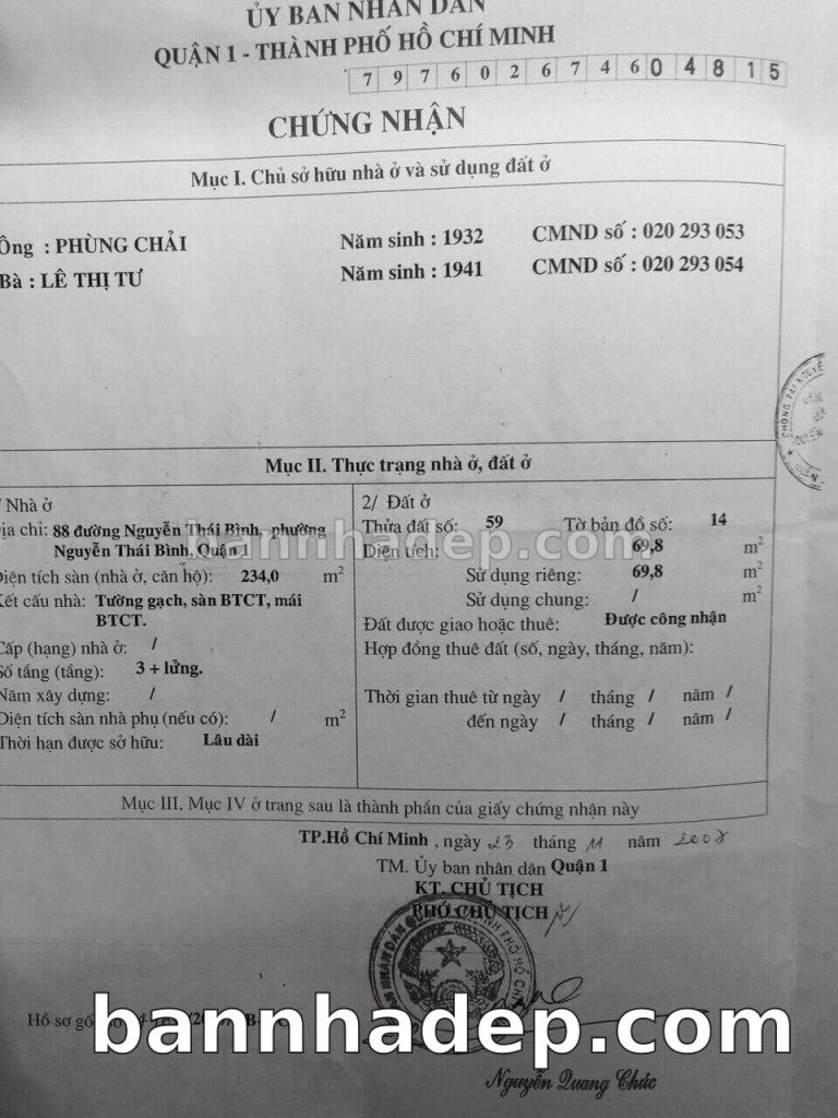 Bán nhà 96 Ký Con phường Nguyễn Thái Bình quận 1