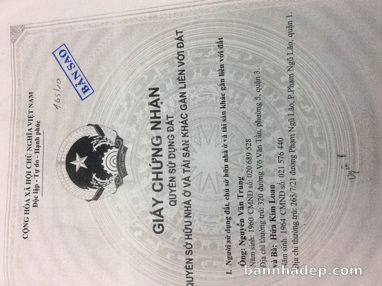 Bán nhà 265/7/21A Phạm Ngũ Lão phường Phạm Ngũ Lão quận 1