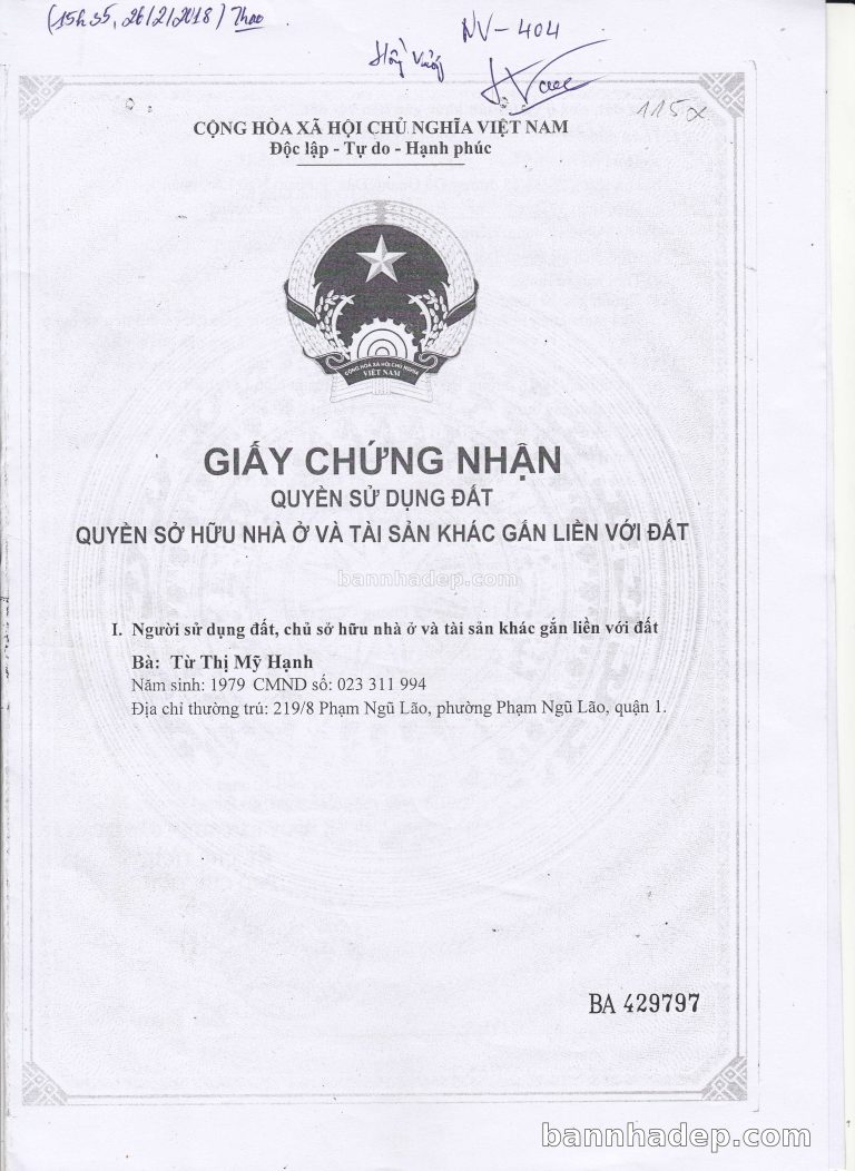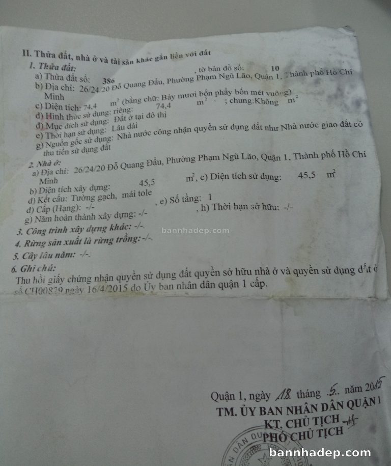 Bán nhà 26/50/56 Đỗ Quang Đẩu phường Phạm Ngũ Lão quận 1