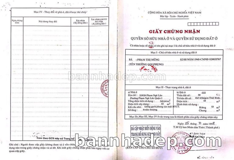 Bán nhà 219/26 Phạm Ngũ Lão phường Phạm Ngũ Lão quận 1