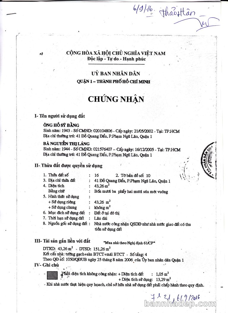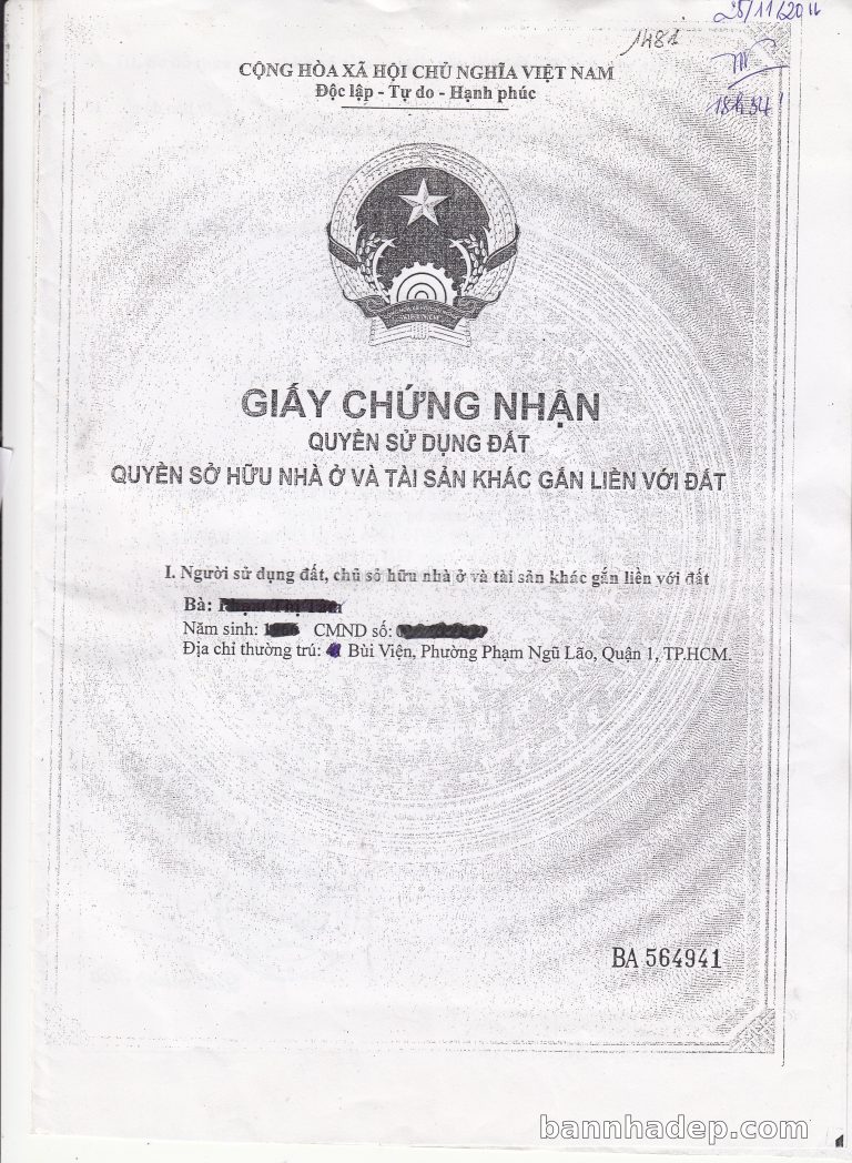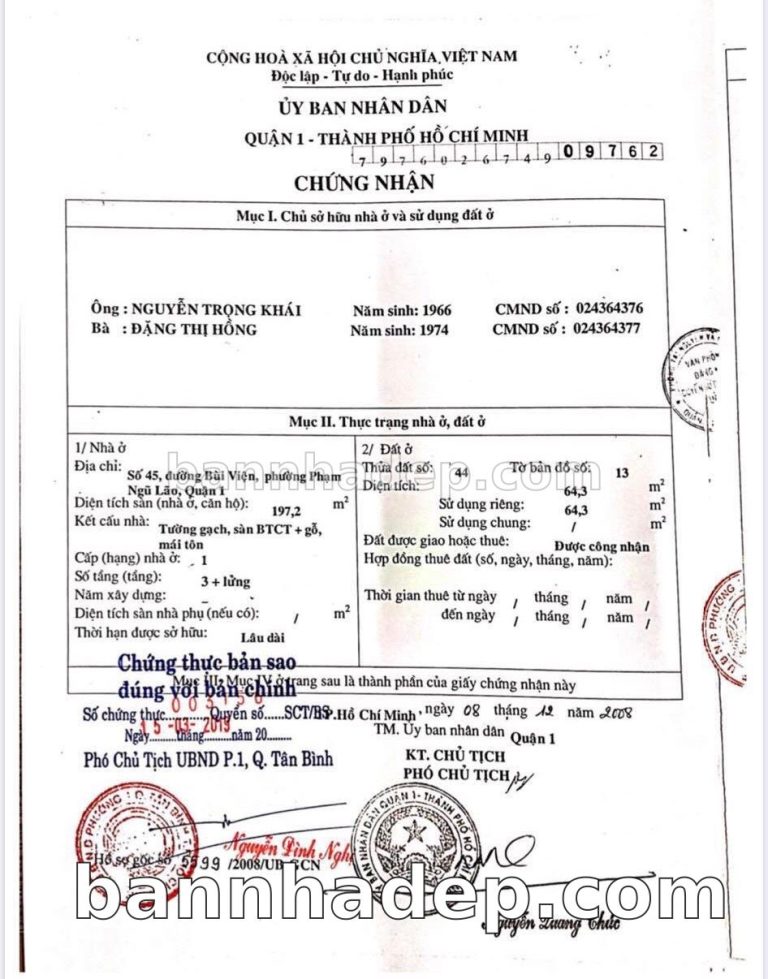 Bán nhà 41A Lương Hữu Khánh phường Phạm Ngũ Lão quận 1