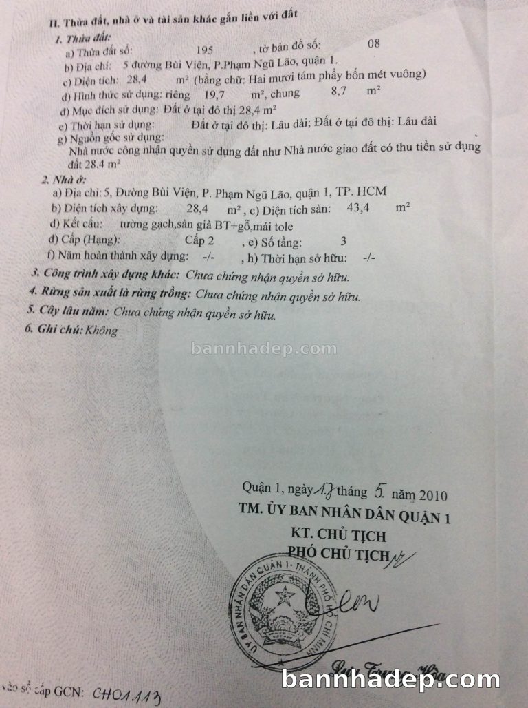 Bán nhà 53 Đỗ Quang Đẩu phường Phạm Ngũ Lão quận 1