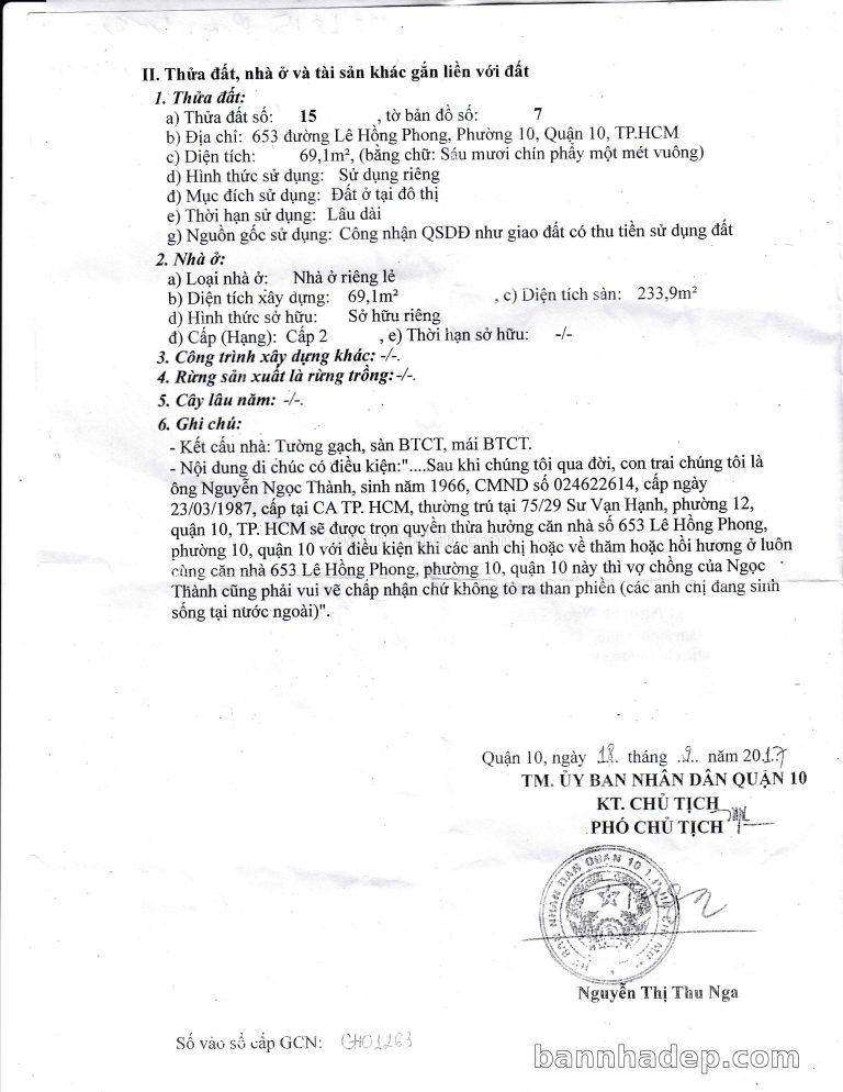 Bán nhà 653 Lê Hồng Phong phường 01 quận 10