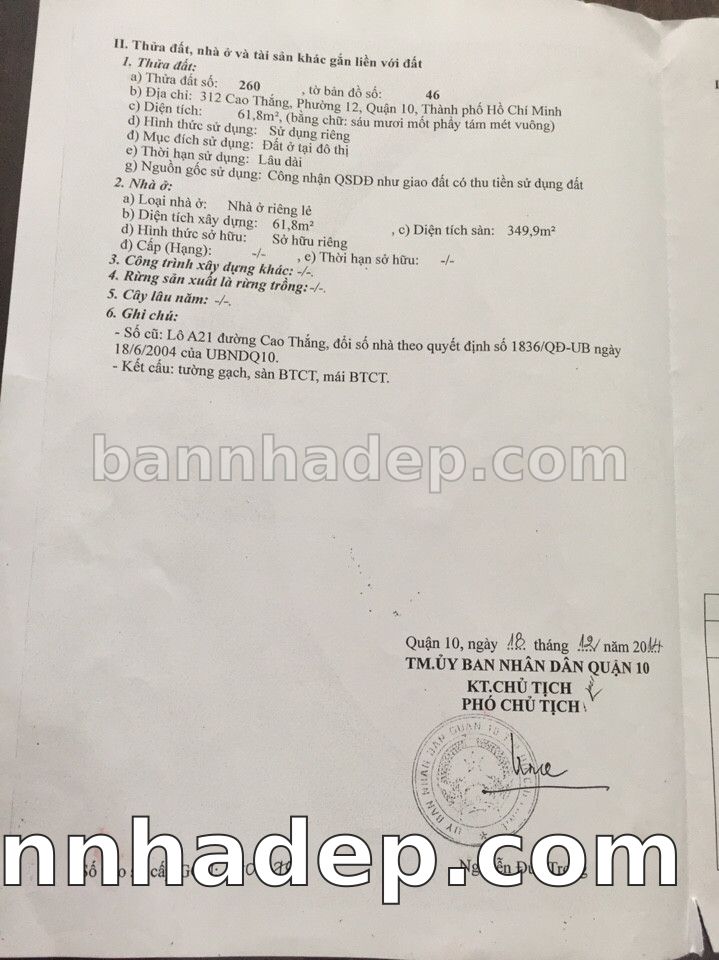 Bán nhà 312 Cao Thắng phường 01 quận 10