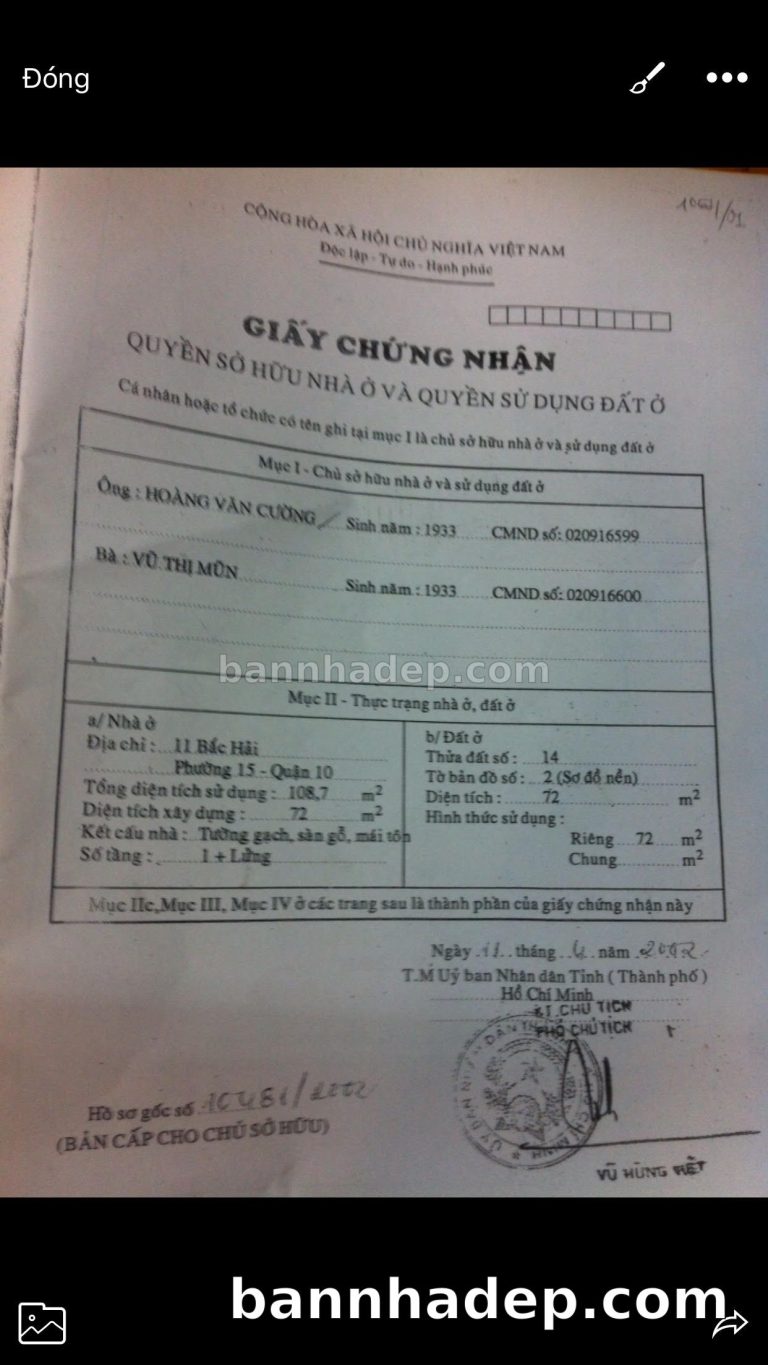 Bán nhà 2 Bis Cửu Long phường 01 quận 10