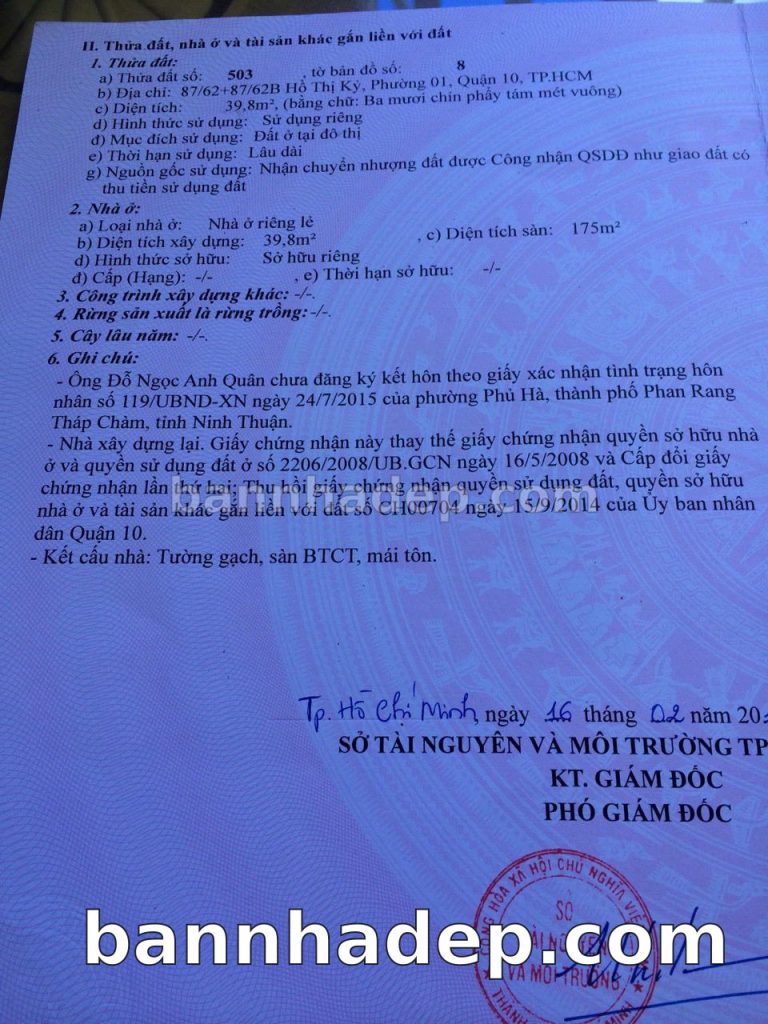 Bán nhà 87/62 – 87/62B Hồ Thị Kỷ phường 01 quận 10