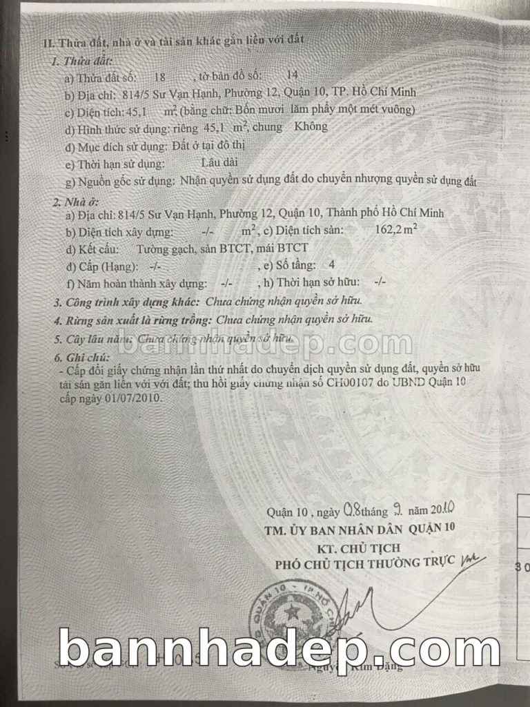 Bán nhà 814/5 Sư Vạn Hạnh phường 01 quận 10