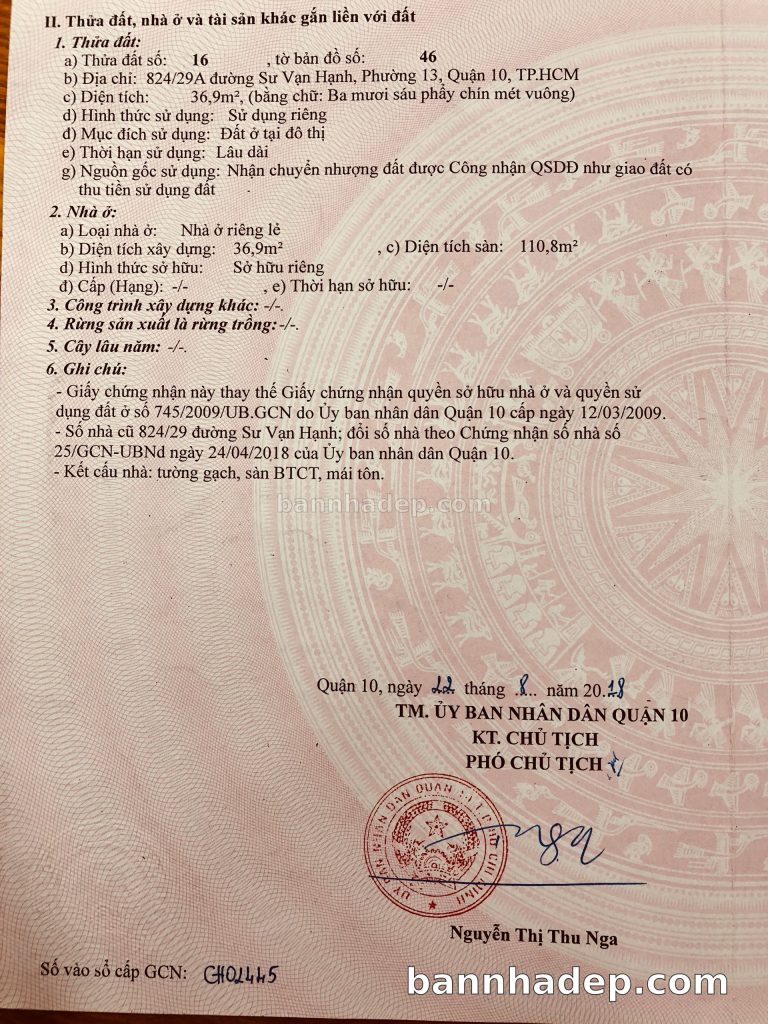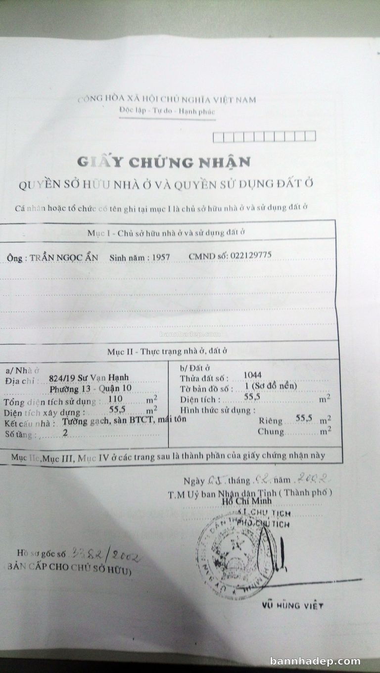 Bán nhà 824/2 Sư Vạn Hạnh phường 01 quận 10