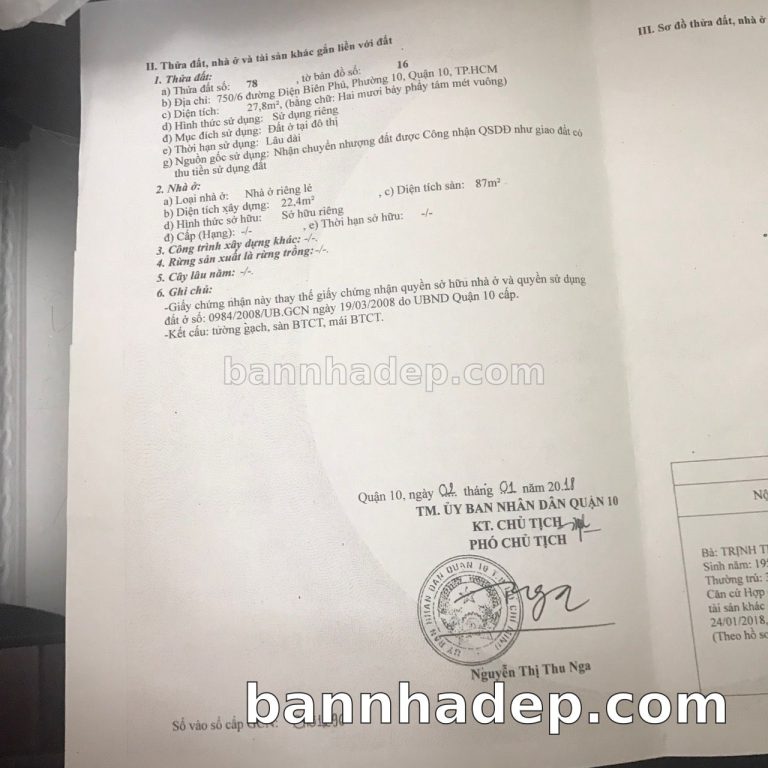 Bán nhà 750/6 Điện Biên Phủ phường 01 quận 10