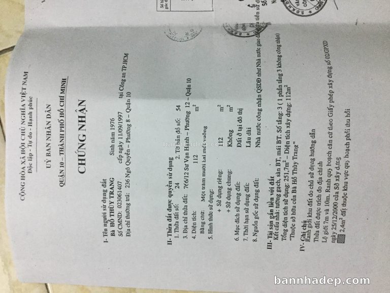 Bán nhà 766/12 Sư Vạn Hạnh phường 01 quận 10