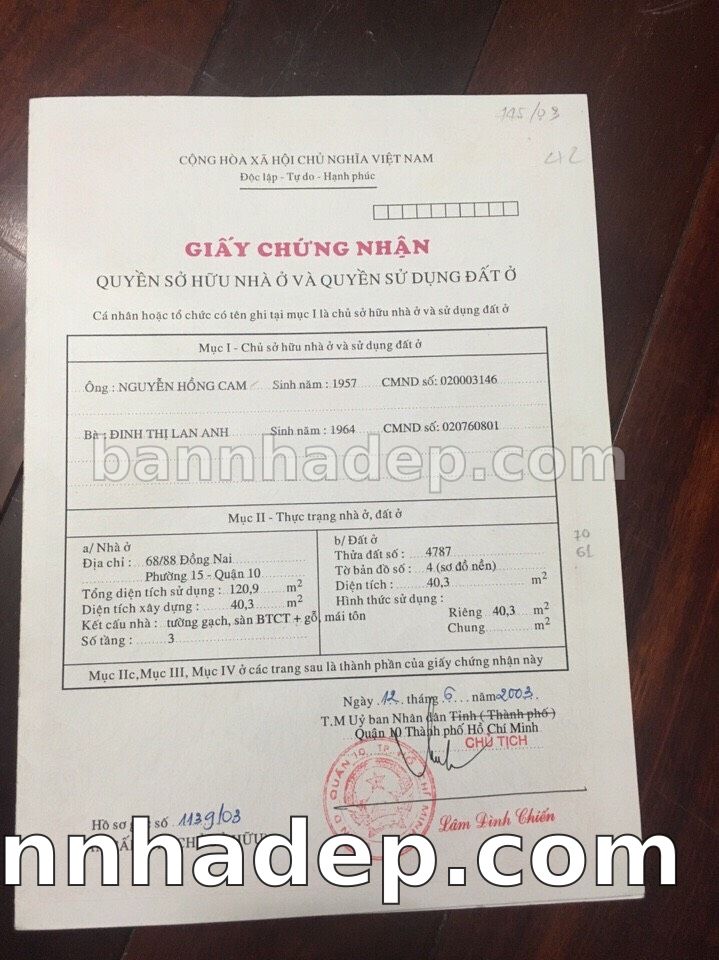 Bán nhà 68/6 Đồng Nai phường 01 quận 10