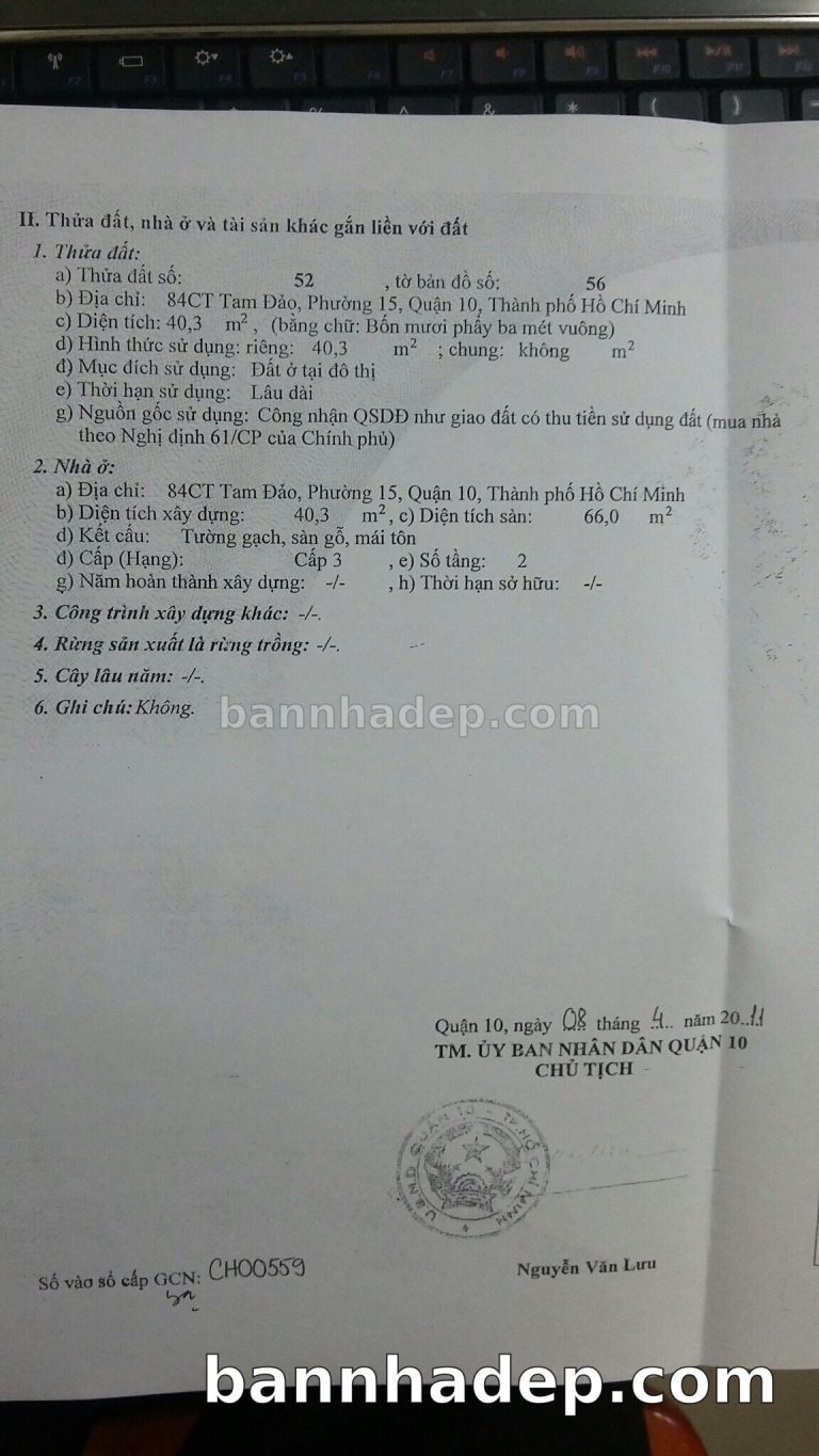 Bán nhà 84CT Tam Đảo phường 01 quận 10
