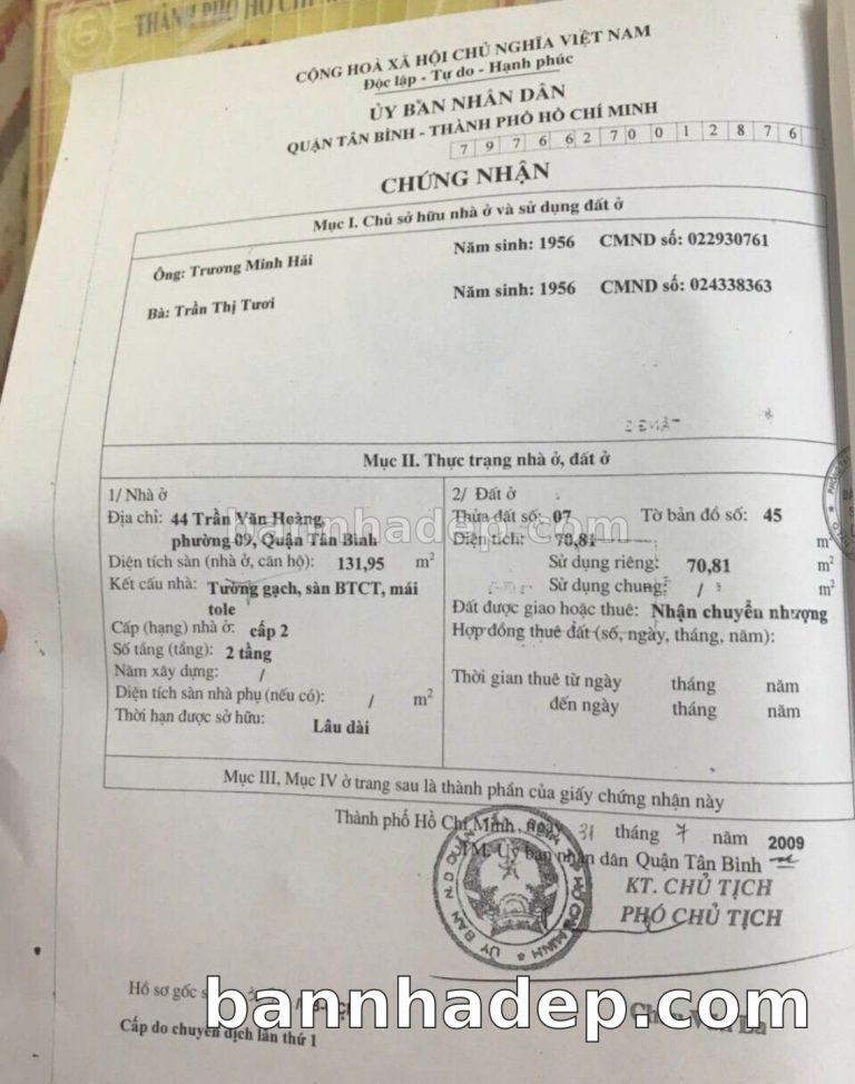 Bán nhà 44 Trần Văn Hoàng phường 09 quận Tân Bình