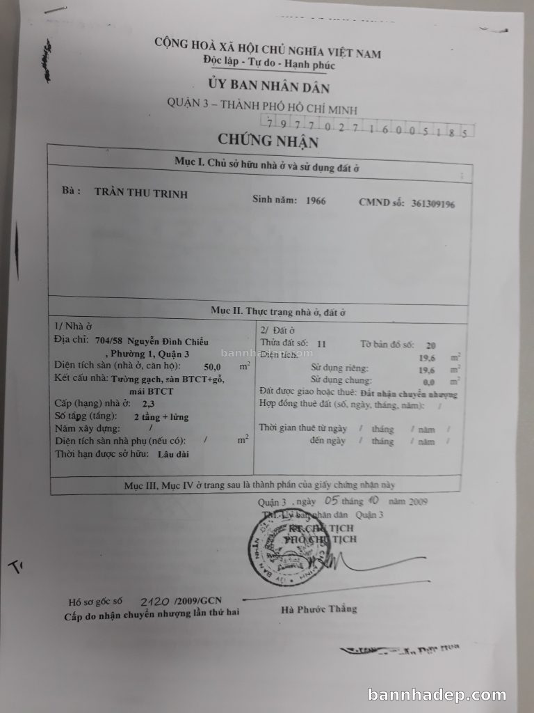 Bán nhà 704/58 Nguyễn Đình Chiểu phường 01 quận 3