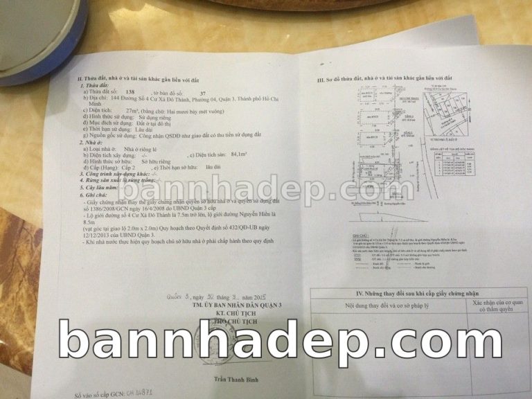 Bán nhà 144 Đường số 4 CX Đô Thành phường 04 quận 3