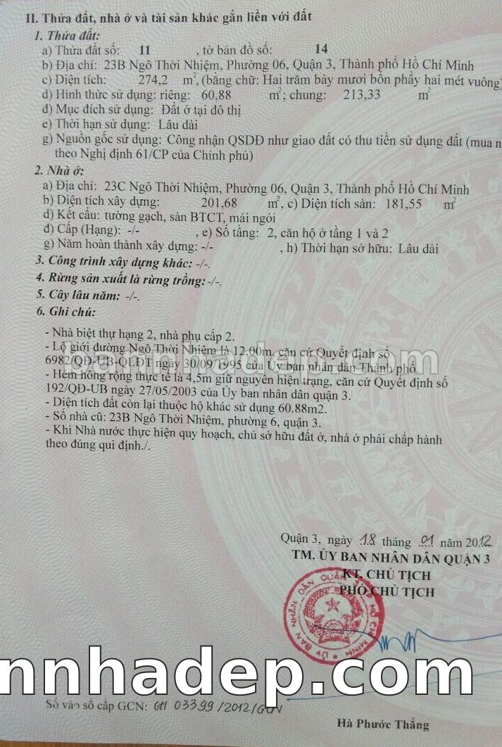 Bán nhà 23A Ngô Thời Nhiệm phường 06 quận 3