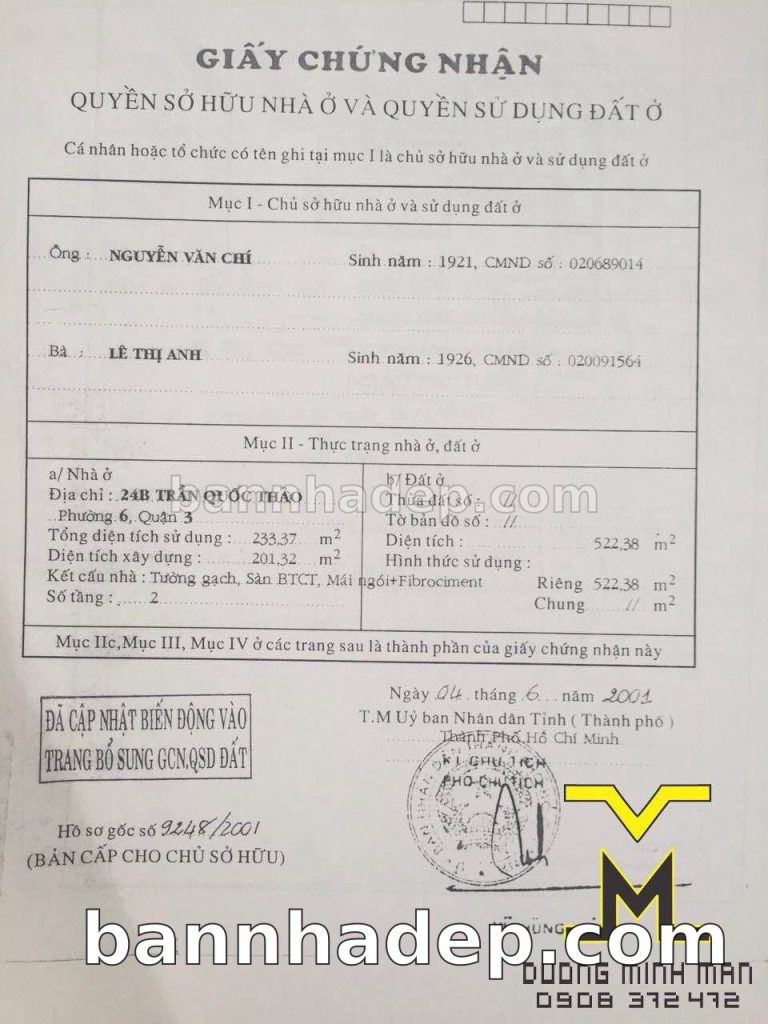 Bán nhà 24B Trần Quốc Thảo phường 06 quận 3