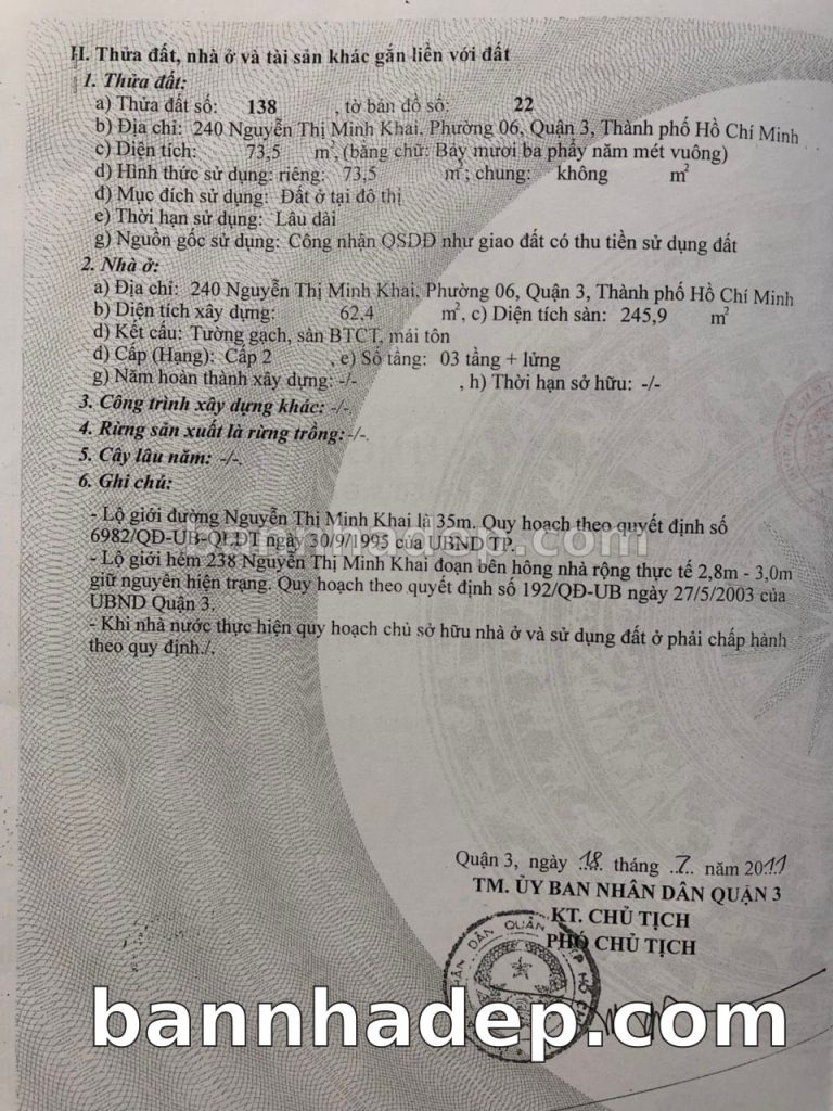 Bán nhà 240 Nguyễn Thị Minh Khai phường 06 quận 3