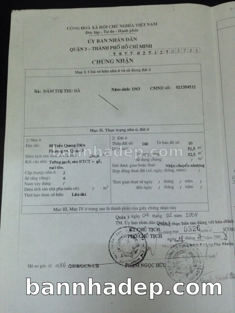 Bán nhà 88 Nguyễn Thiện Thuật phường 02 quận 3