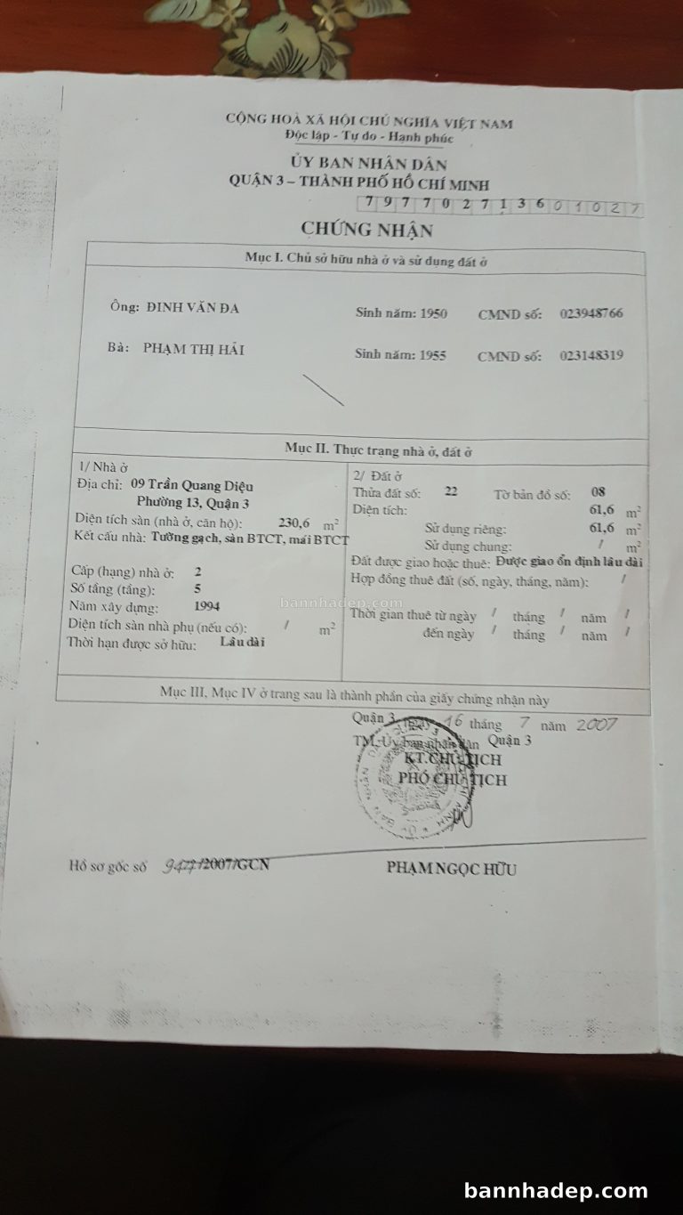 Bán nhà 90 Bà Huyện Thanh Quan phường 09 quận 3