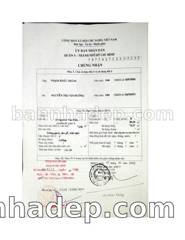 Bán nhà 10 Nguyễn Văn Mai phường 08 quận 3