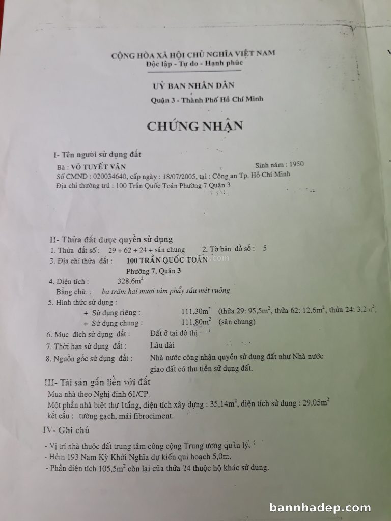 Bán nhà 100 Trần Quốc Toản phường 07 quận 3