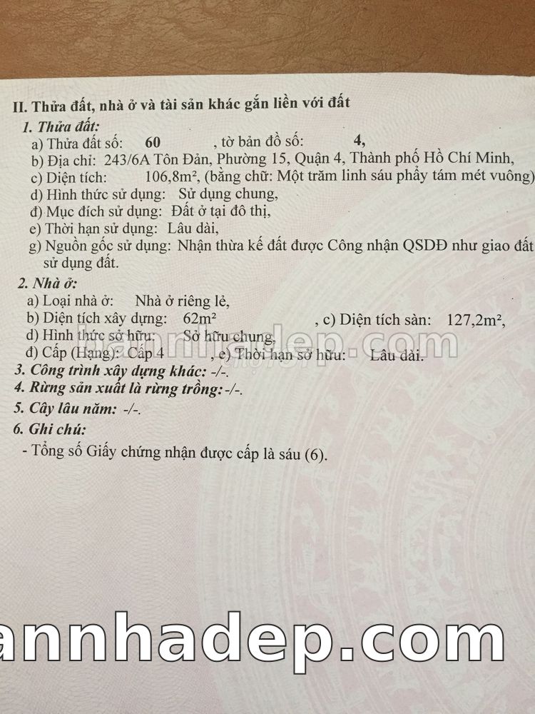 Bán nhà 26668 Tôn Đản phường 08 quận 4