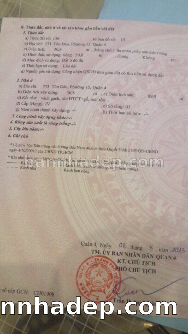 Bán nhà 48 Tôn Đản phường 01 quận 4