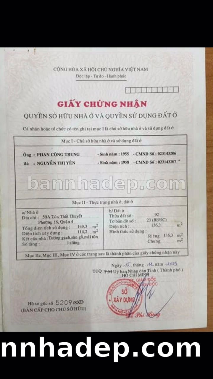 Bán nhà 50A Tôn Thất Thuyết phường 01 quận 4